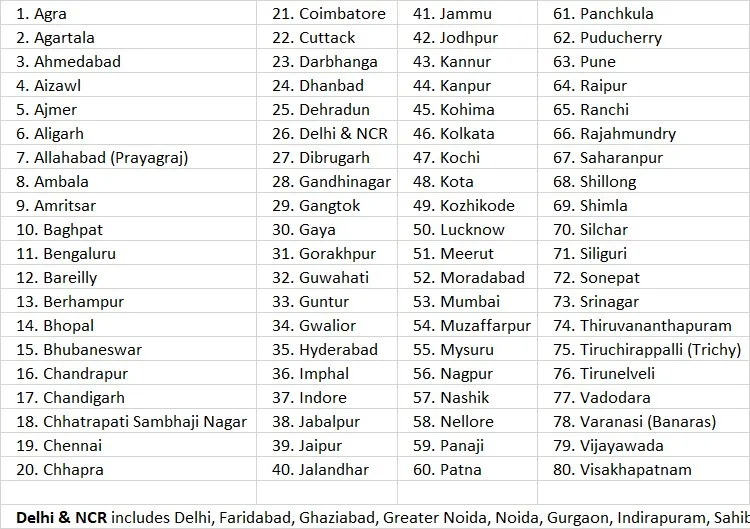 CGHS services are now accessible in 80 cities across India. The complete list includes prominent locations such as Delhi & NCR, Mumbai, Kolkata, Chennai, Lucknow, and more.